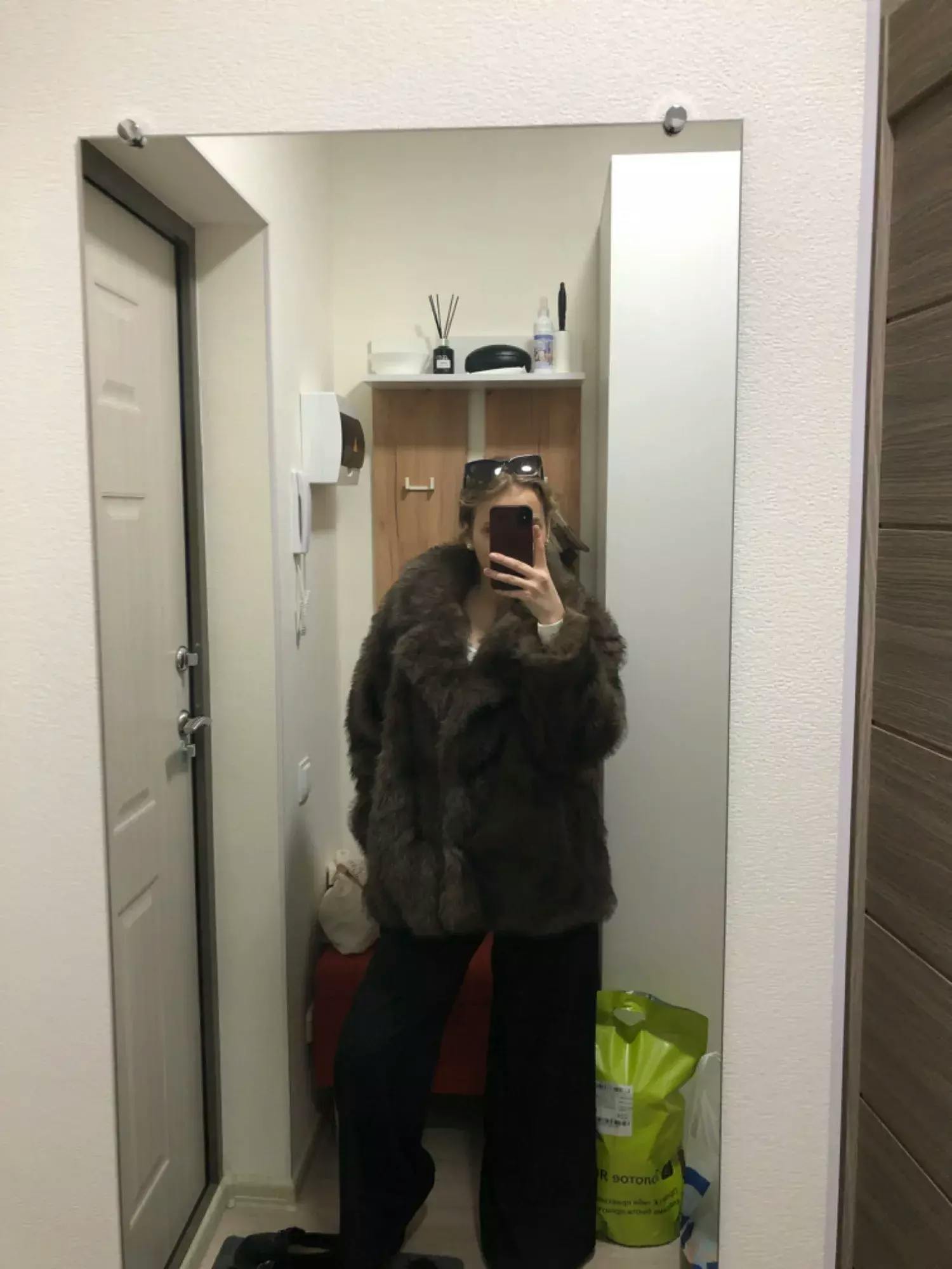 What can I say? It's not a bad fur coat. It's fluffy like in the photo. For a short person, if you want it to cover your kidneys, then for a height of 155 cm, size M is not bad at all. It's wide and fastens with 1 button. So I think it will be comfortable to wear only with a scarf. I can't say anything about frost resistance yet; I hope it won't freeze even at -15 or slightly below. But I think with a sweatshirt it will be quite wearable.