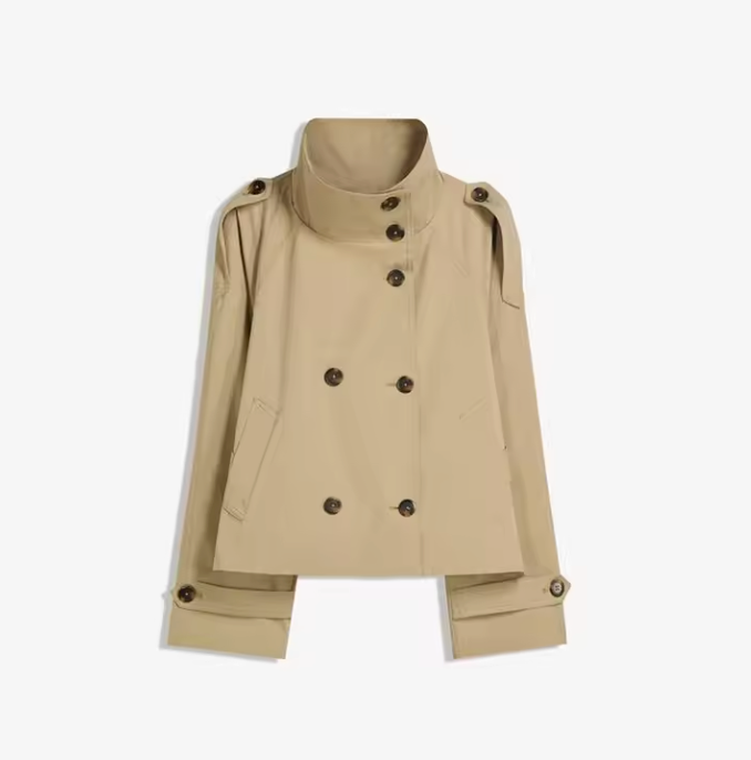 An iconic piece reimagined in a modern and elegant version. With its high collar, structured cut, and contrasting buttons, it immediately adds a sophisticated touch to your outfits.